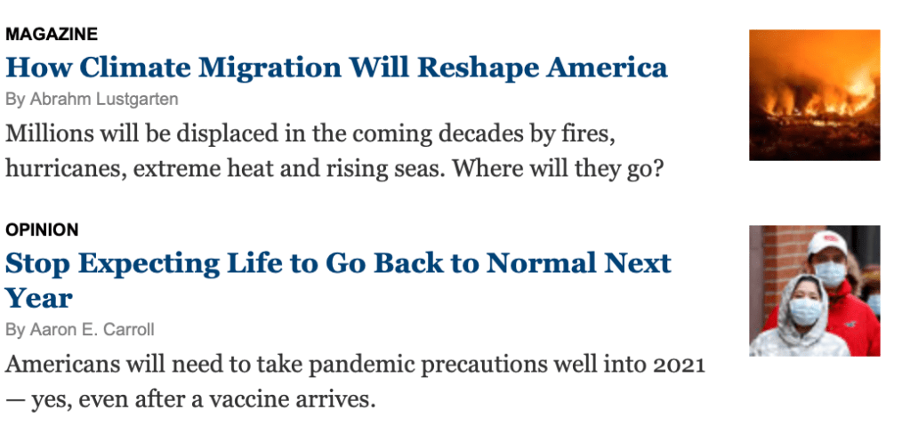 I’d planned to write, yesterday, about mass migration driven by climate crisis, but then the New York Times went and scooped me:
